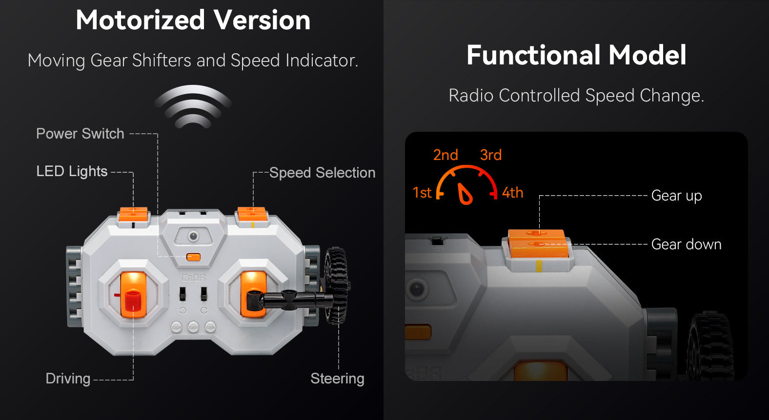 Equipped with front and rear LED lights that can be operated independently for added realism.