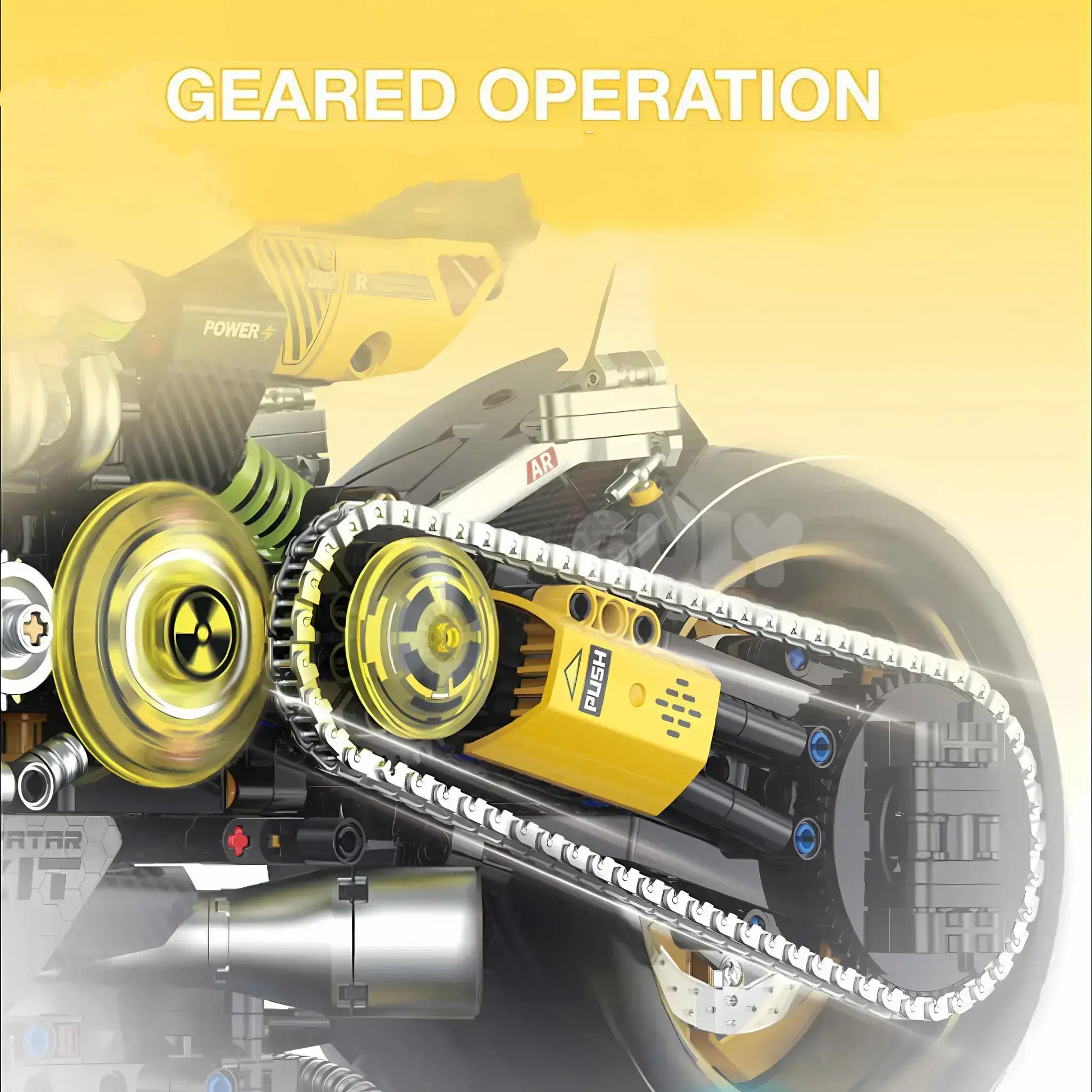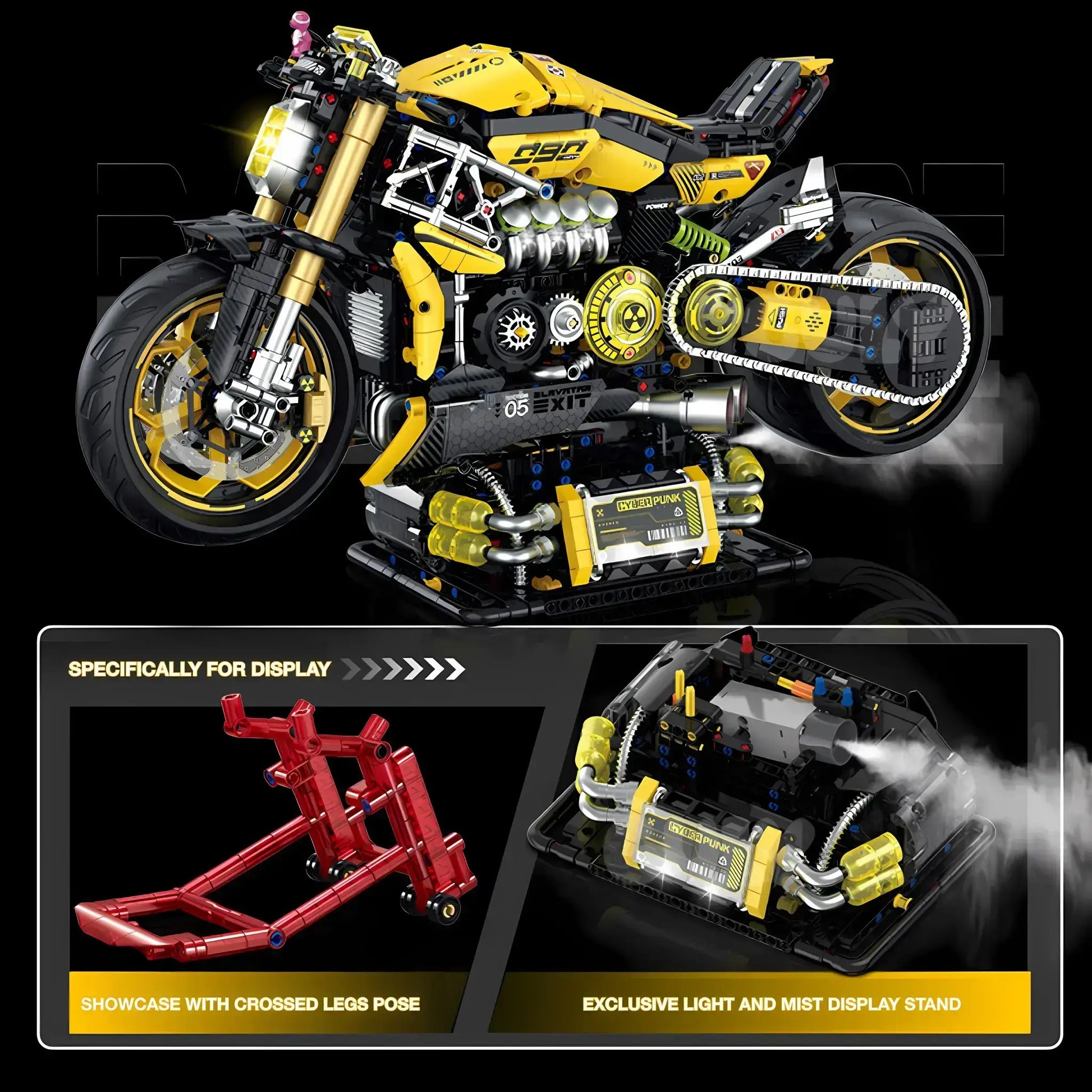 Step into the future with the Cyberpunk Big Devil Motorcycle. This 1:5 scale, 2,752-piece model brings the cutting-edge aesthetics of futuristic tech to life. With its sleek design and bold details, this motorcycle embodies the cyberpunk vibe, making it perfect for fans of the genre.