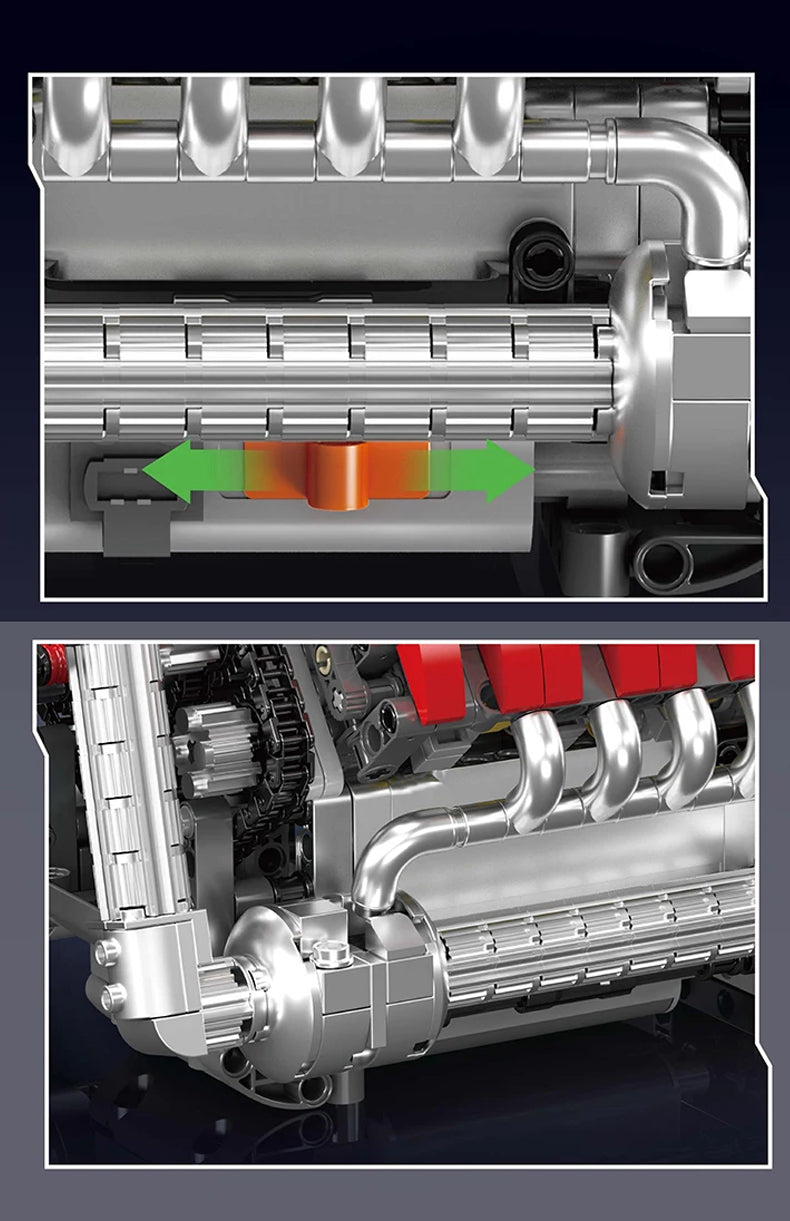 This build is more than just a static display piece. Featuring a large electric motor and an adjustable speed controller, you can start the engine and witness the synchronized operation of the crankshaft, camshaft, pulleys, and gearbox. This creates a dynamic, immersive experience, replicating the mechanical beauty of the real M8 engine.