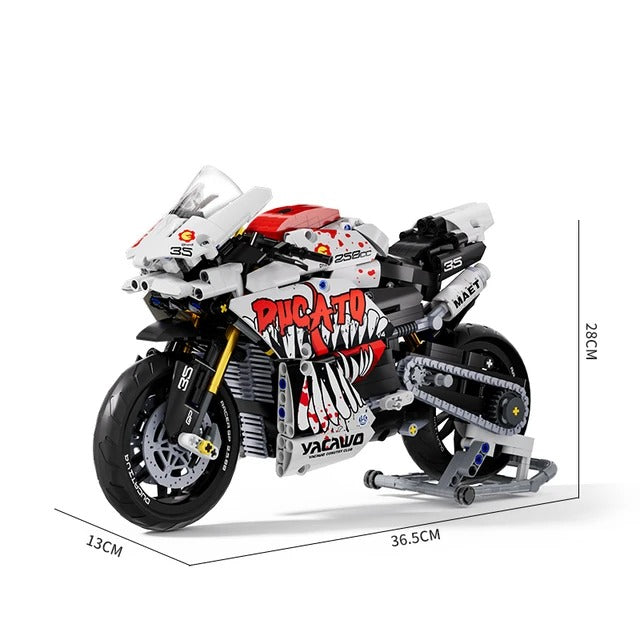 Introducing the Phoenix V4 R Monster, a buildable motorcycle that brings high-performance engineering to life. This set captures the aggressive design and racing spirit of the Phoenix V4 R Monster, complete with its sharp lines, aerodynamic fairings, and distinctive graphics design.